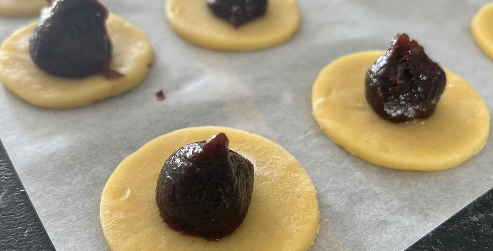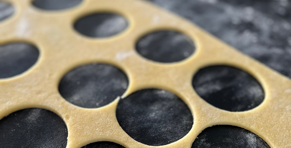 את הבצק המקורר מרדדים על משטח מקומח לעובי של 3 מ"מ ובעזרת כוס או חותכן קורצים עיגולים.